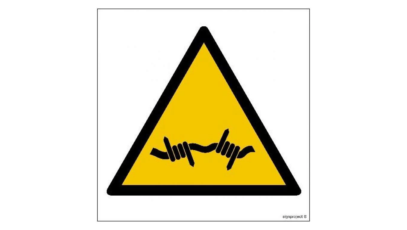 ZNAK - GD033 Ostrzeżenie przed drutem kolczastym 25 x 25 cm PN - Płyta 1mm