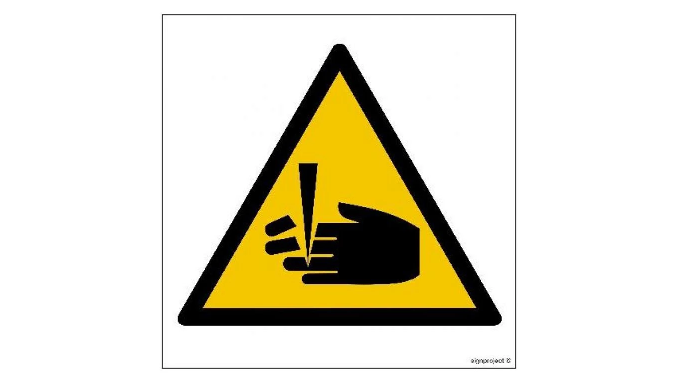 ZNAK - GE007 Ostrzeżenie przed niebezpieczeństwem obcięcia palców 10 x 10 cm KN - Folia podłogowa
