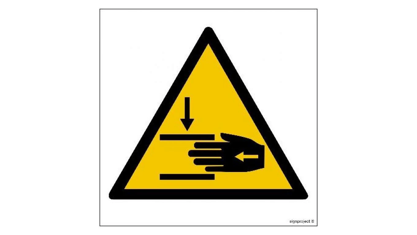 ZNAK - GE012 Uwaga niebezpieczeństwo zgniecenia dłoni - arkusz 12 naklejek 5 x 5 cm FS - Folia samoprzylepna foto.