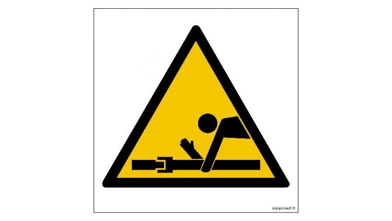 ZNAK - GE017 Uwaga ruchome elementy 35 x 35 cm KS - Folia podłogowa foto.