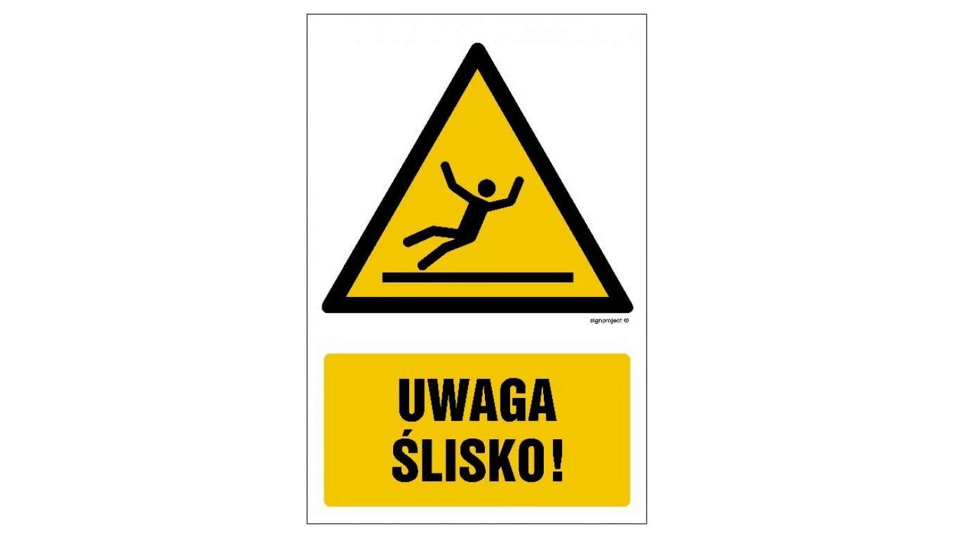 ZNAK - GF020 Uwaga - ślisko 15 x 22,5 cm FS - Folia samoprzylepna foto.