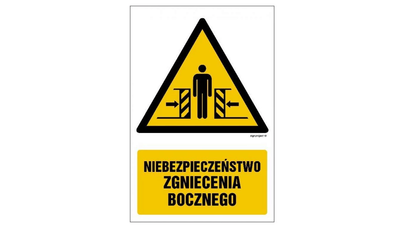 ZNAK - GF031 Niebezpieczeństwo zgniecenia bocznego - arkusz 9 naklejek 5 x 7,5 cm FS - Folia samoprzylepna foto.