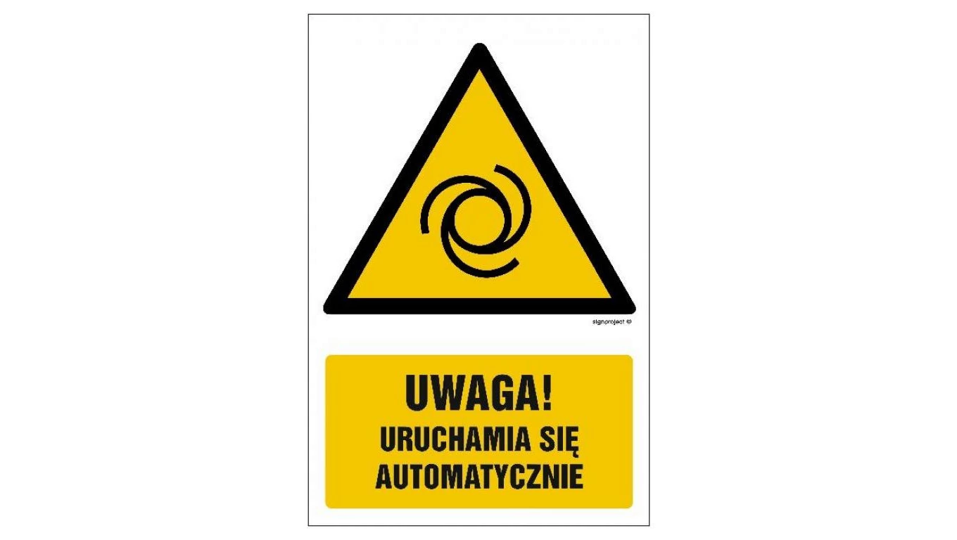 ZNAK - GF034 Uwaga! Uruchamia się automatycznie 30 x 45 cm FS - Folia samoprzylepna foto.