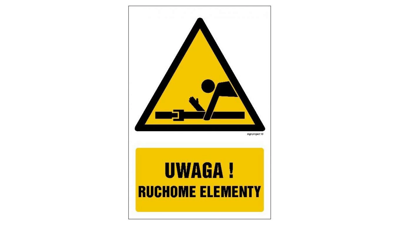 ZNAK - GF059 Uwaga! Ruchome elementy - arkusz 9 naklejek 5 x 7,5 cm FN - Folia samoprzylepna