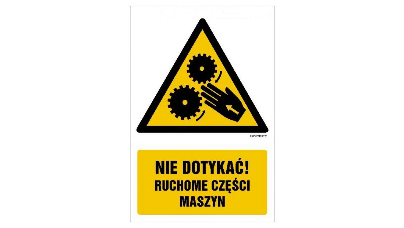 ZNAK - GF075 Nie dotykać! Ruchome części maszyny 20 x 30 cm KN - Folia podłogowa