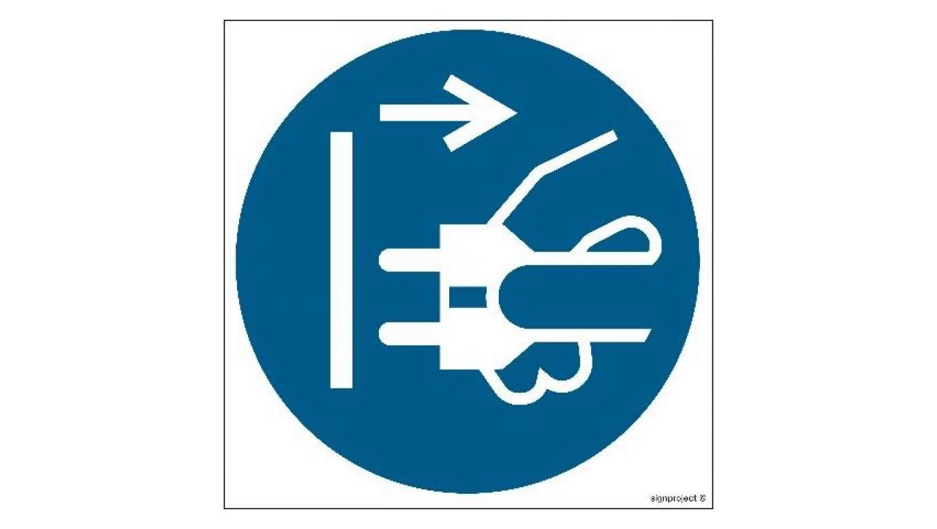 ZNAK - GJ006 Nakaz odłączenia urządzenia od sieci elektrycznej 15 x 15 cm FS - Folia samoprzylepna foto.