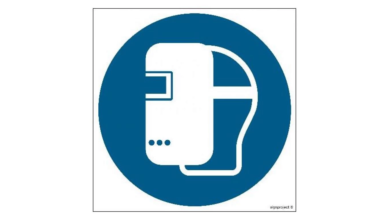 ZNAK - GJ019 Nakaz stosowania maski spawalniczej 15 x 15 cm FS - Folia samoprzylepna foto.