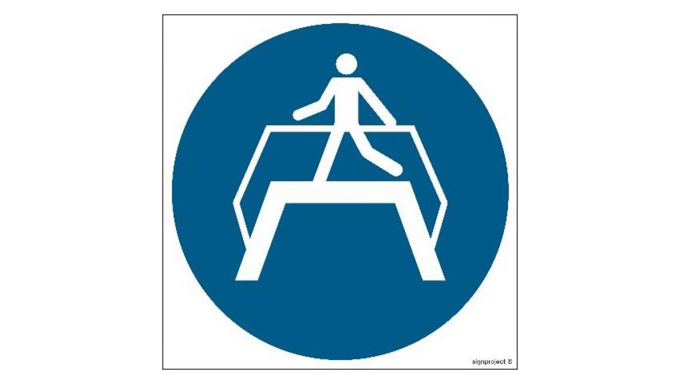 ZNAK - GJ023 Nakaz przechodzenia pomostem 25 x 25 cm FS - Folia samoprzylepna foto.