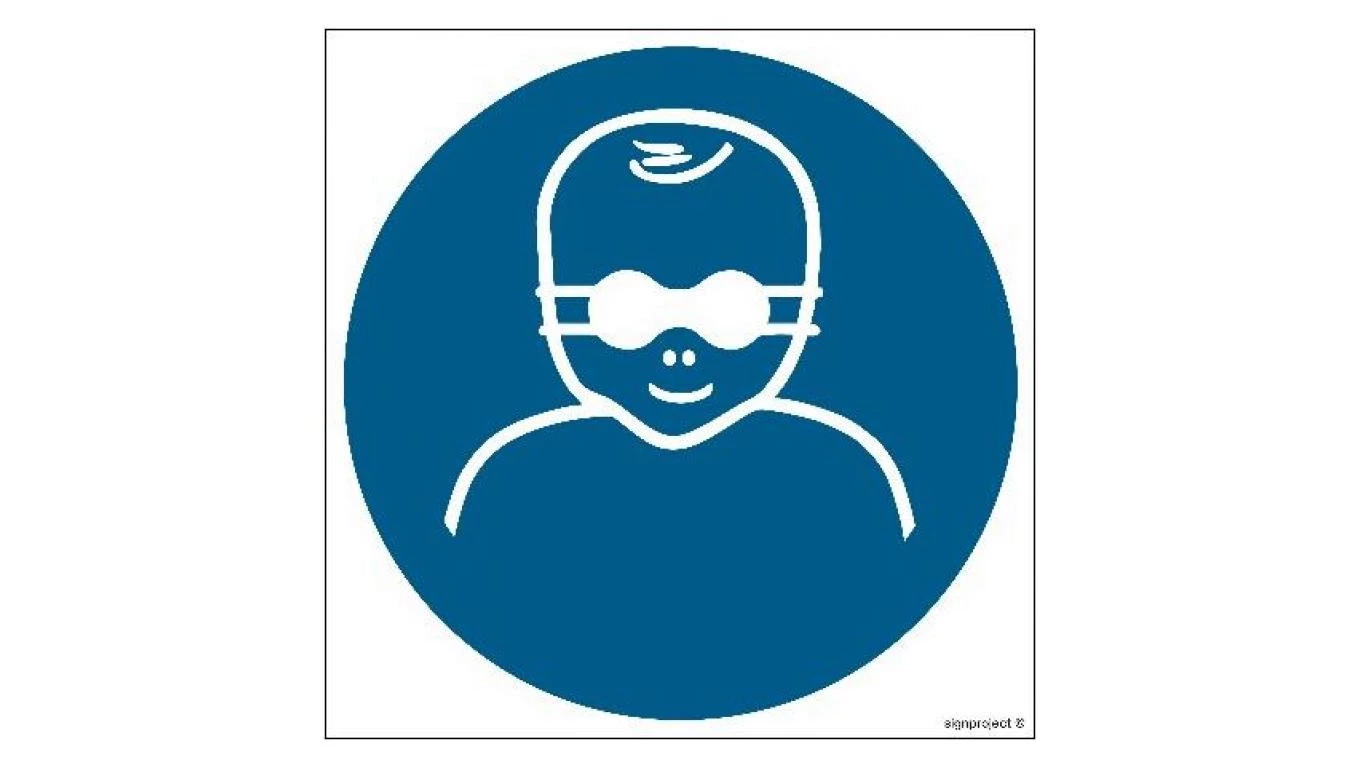 ZNAK - GJ025 Nakaz ochrony oczu dzieci nieprzejrzystymi okularami ochronnymi 20 x 20 cm PS - Płyta 1mm foto.