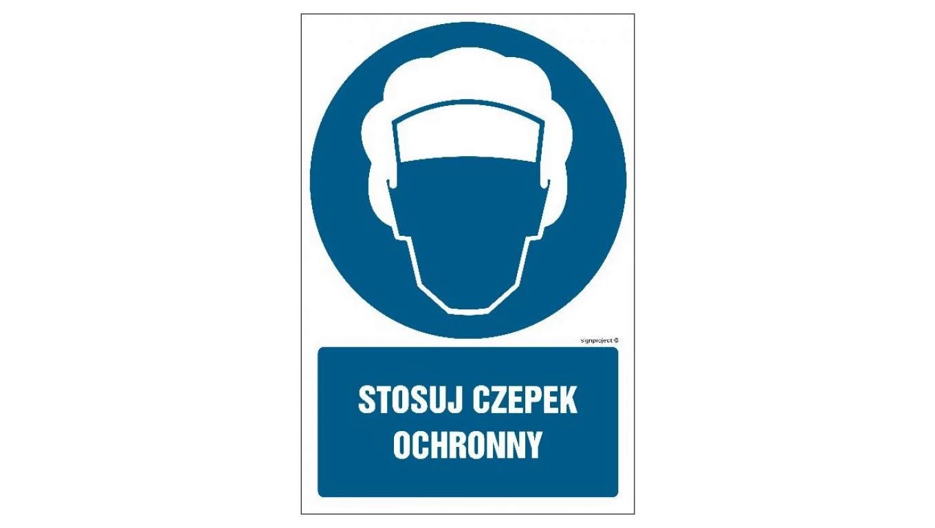 ZNAK - GL025 Stosuj czepek ochronny 30 x 45 cm KN - Folia podłogowa