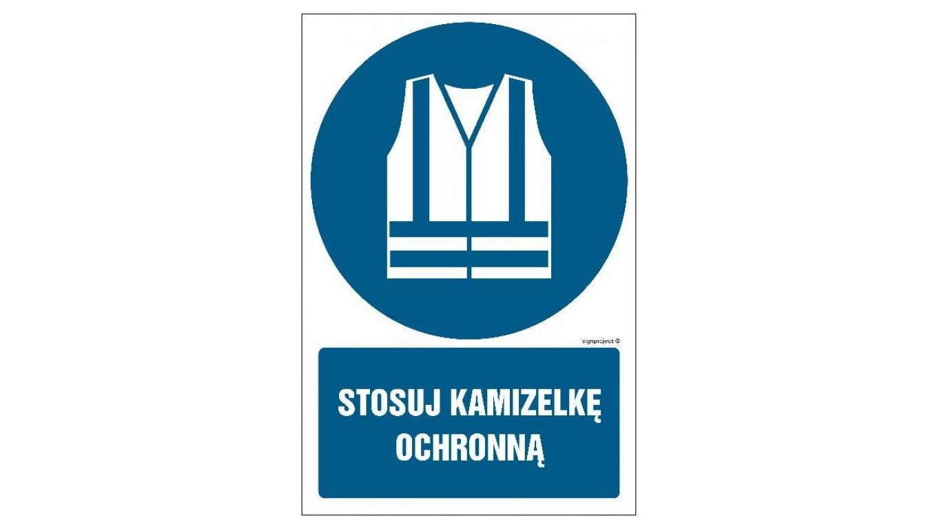 ZNAK - GL032 Stosuj kamizelkę ochronną 20 x 30 cm FS - Folia samoprzylepna foto.