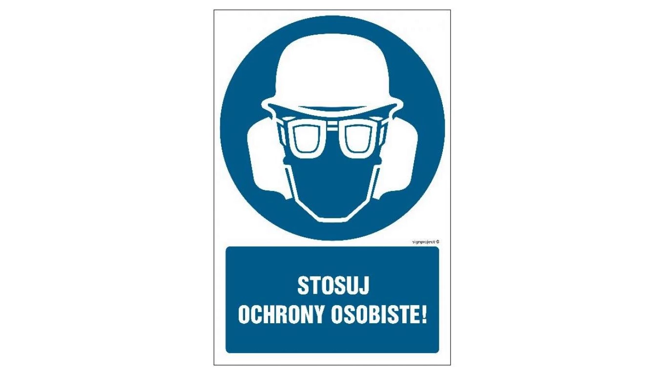 ZNAK - GL052 Stosuj ochrony osobiste! 30 x 45 cm FN - Folia samoprzylepna