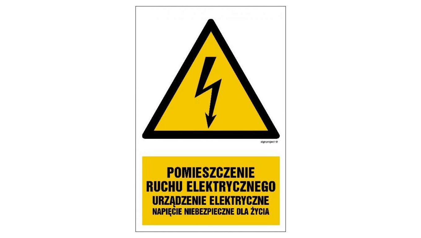 ZNAK - HA028 Pomieszczenie ruchu elektrycznego urządzenie elektryczne napięcie niebezpieczne dla życia 30 x 45 cm PN - Płyta 1mm