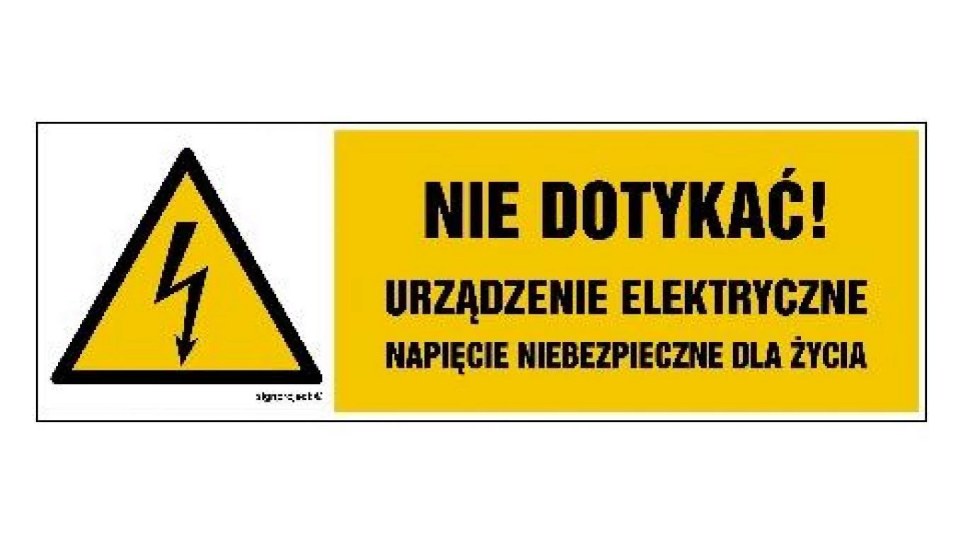 ZNAK - HB022 Nie dotykać urządzenie elektryczne napięcie niebezpieczne dla życia 45 x 15 cm FN - Folia samoprzylepna