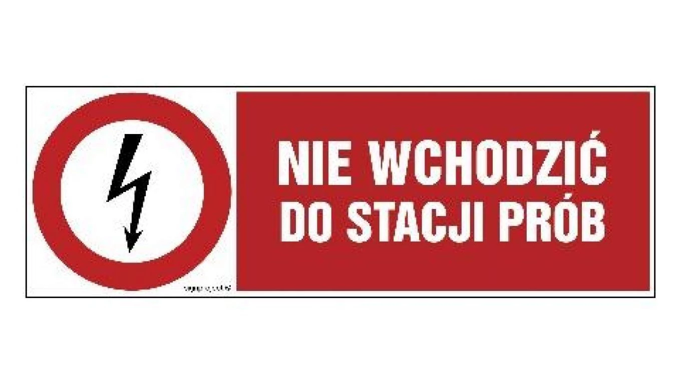 ZNAK - HD006 Nie wchodzić do stacji prób 45 x 15 cm FN - Folia samoprzylepna