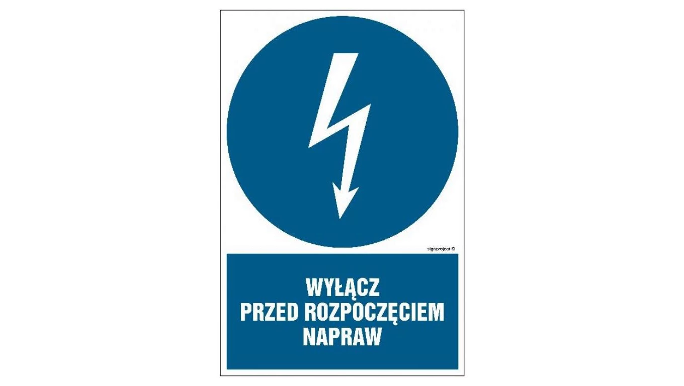 ZNAK - HE018 Wyłącz przed rozpoczęciem napraw 10 x 15 cm FN - Folia samoprzylepna