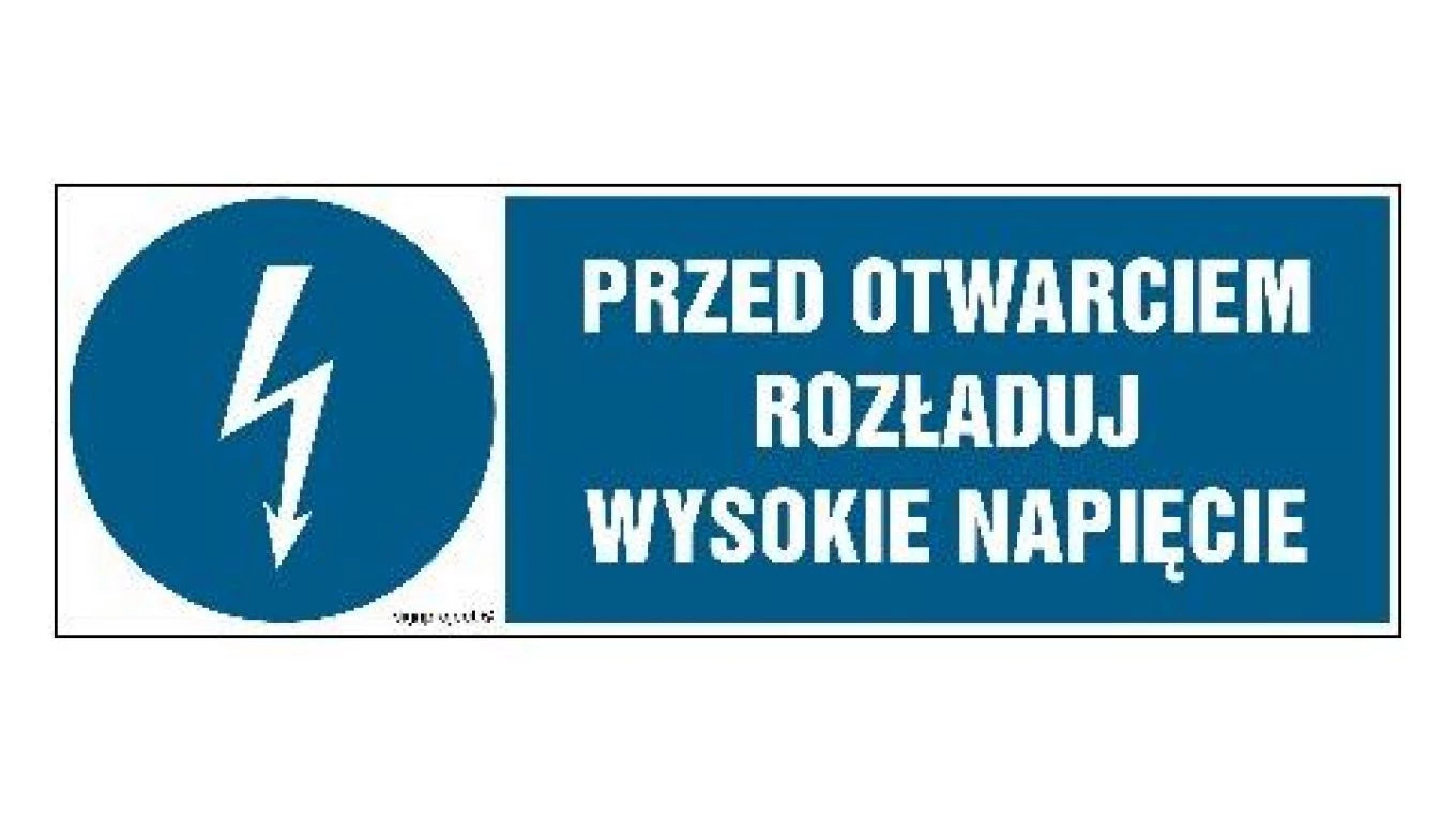 ZNAK - HF006 Przed otwarciem rozładuj wysokie napięcie - arkusz 8 naklejek - arkusz 8 naklejek 10 x 3,3 cm FN - Folia samoprzyle