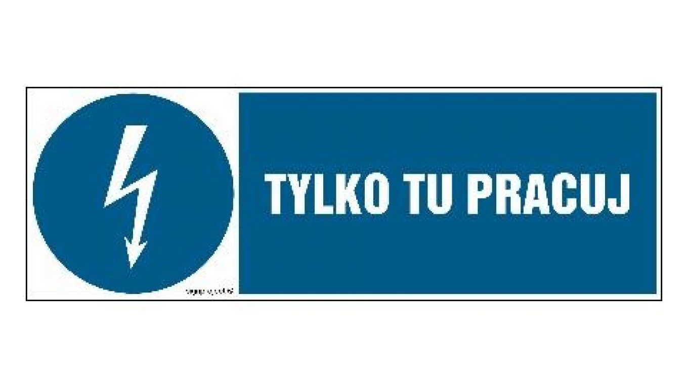 ZNAK - HF009 Tylko tu pracuj - arkusz 8 naklejek - arkusz 8 naklejek 10 x 3,3 cm FN - Folia samoprzylepna