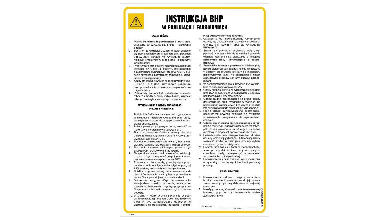 ZNAK - IAA27 Instrukcja BHP w pralniach i farbiarniach 24,5 x 35 cm HN - Płyta TD-flex 0,4mm