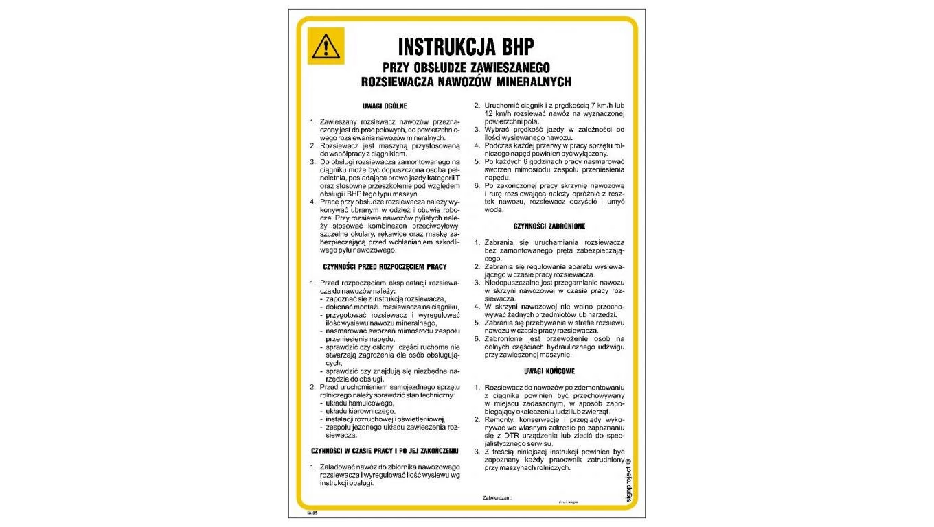 ZNAK - IAI04 Instrukcja BHP przy magazynowaniu paliw i smarów w rolnictwie 24,5 x 35 cm PN - Płyta 1mm