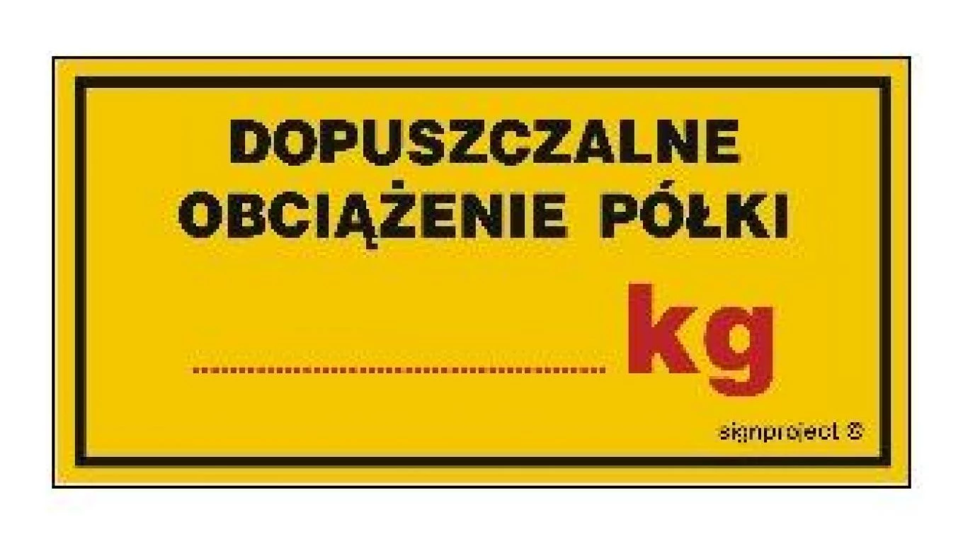 ZNAK - NC038 Dopuszczalne obciążenie półki ....... kg 20 x 10 cm FN - Folia samoprzylepna