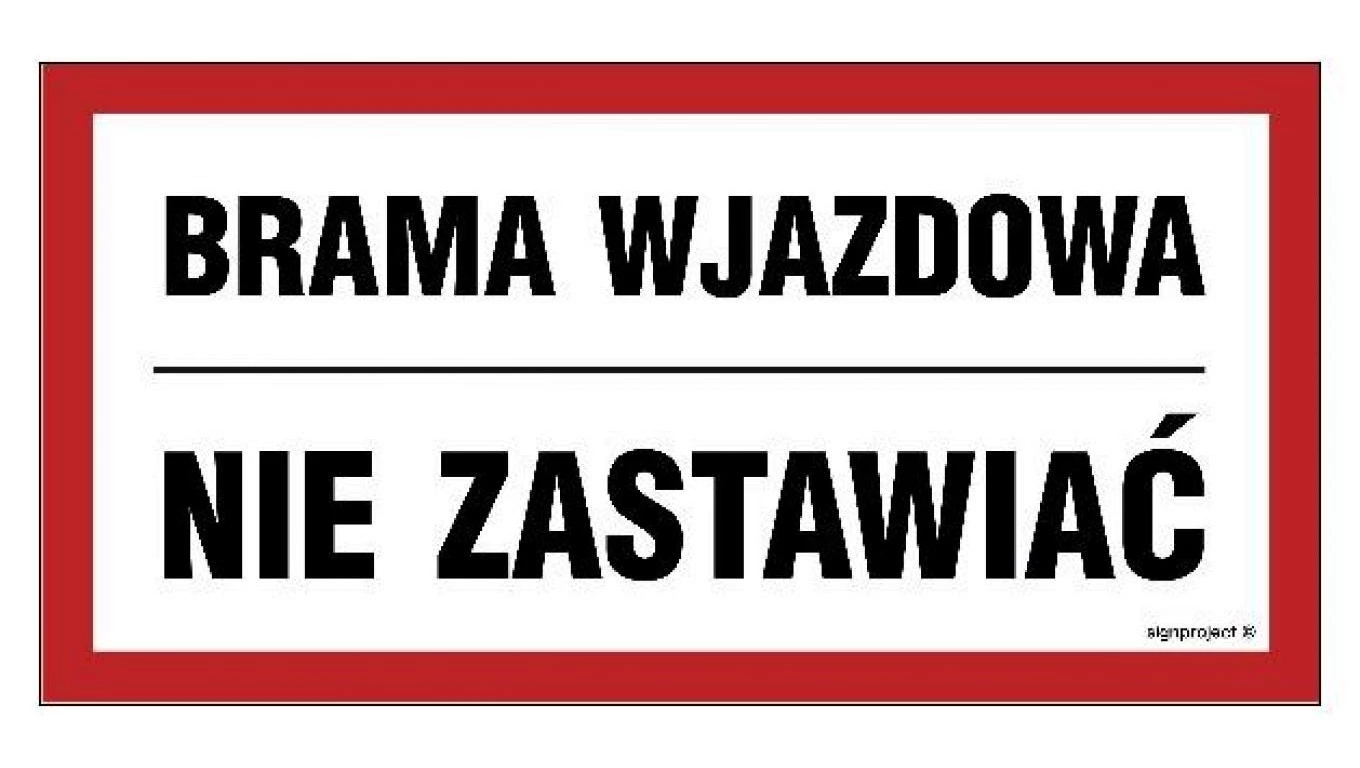 ZNAK - NC041 Brama wjazdowa nie zastawiać 20 x 10 cm PN - Płyta 1mm