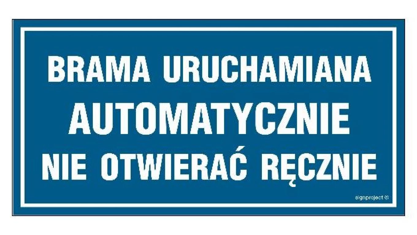ZNAK - NC044 Brama uruchamiana automatycznie nie otwierać ręcznie 60 x 30 cm PN - Płyta 1mm