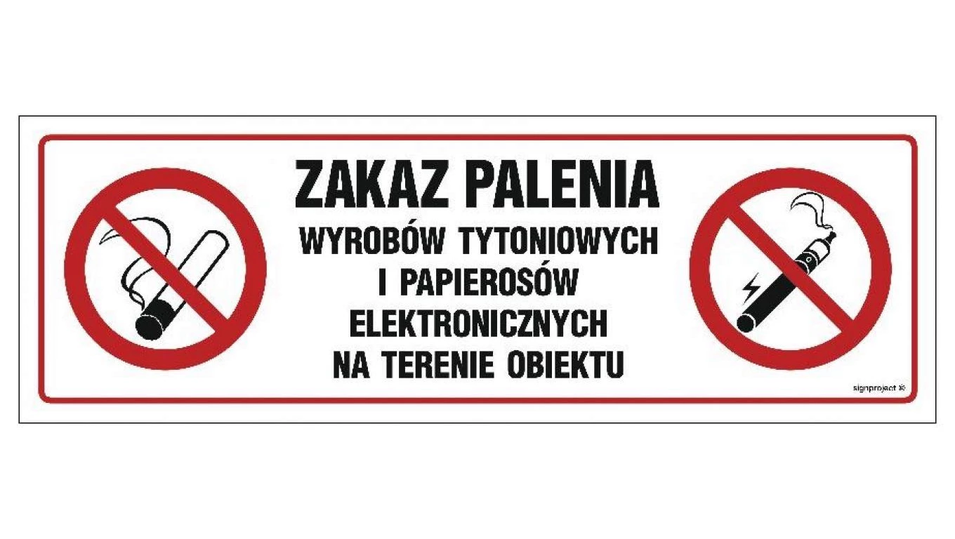ZNAK - NC088 Zakaz palenia wyrobów tytoniowych i papierosów elektronicznych na terenie obiektu 45 x 15 cm FN - Folia samoprzylep