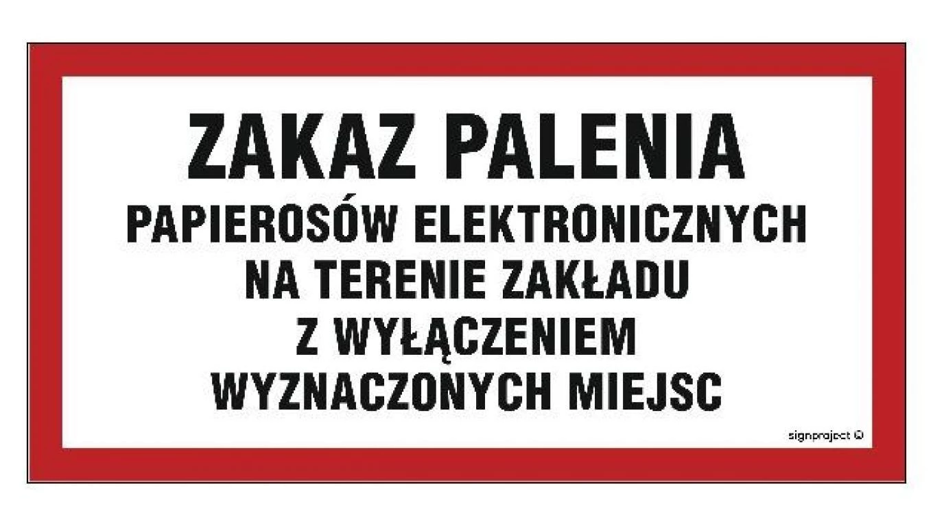 ZNAK - NC097 Zakaz palenia papierosów elektronicznych na terenie zakładu z wyłączeniem wyznaczonych miejsc 60 x 30 cm PN - Płyta