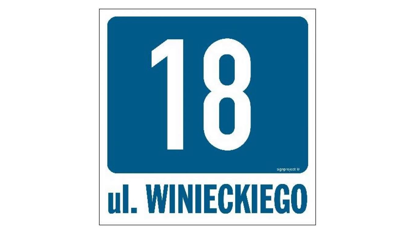 ZNAK - NC112 Znak na zamówienie, Ulica... Nr... 25 x 25 cm FN - Folia samoprzylepna
