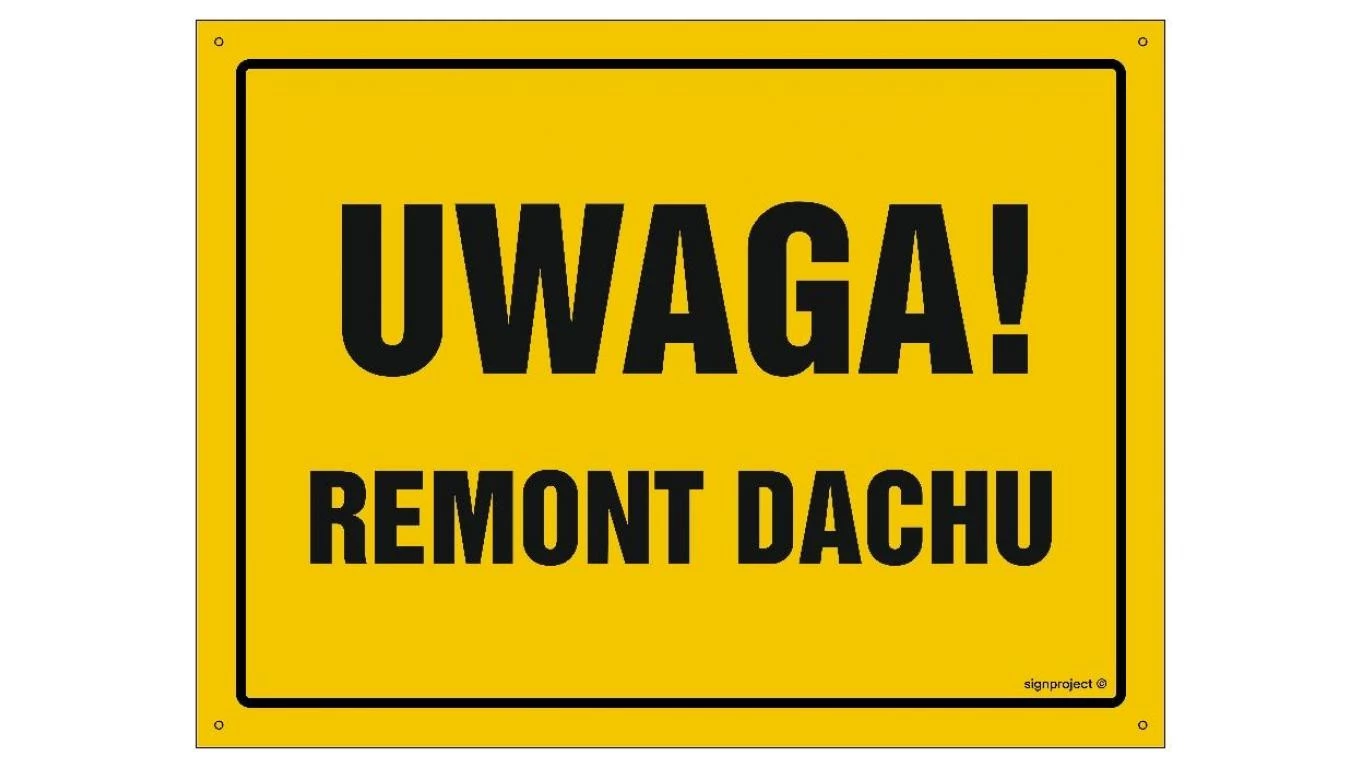 ZNAK - OA006 Uwaga! Remont dachu 30 x 21,5 cm FN - Folia samoprzylepna