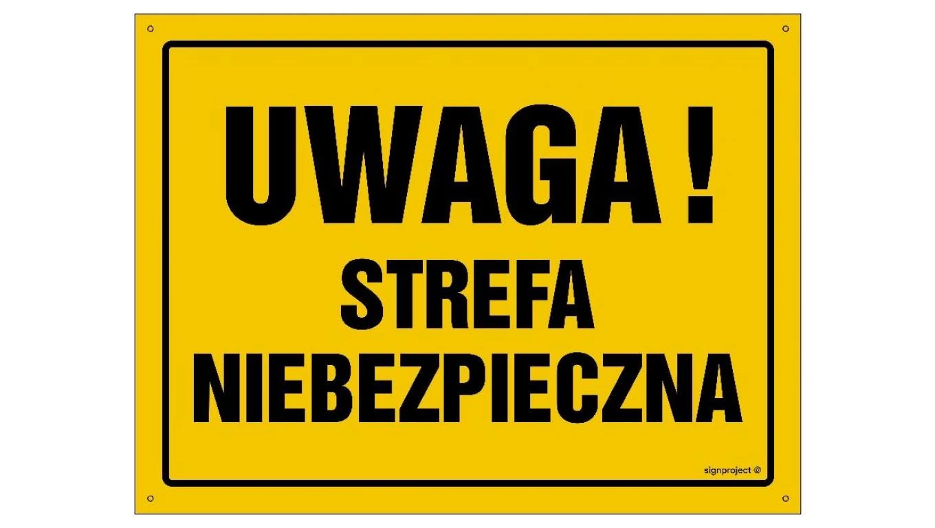 ZNAK - OA026 Uwaga! Strefa niebezpieczna 60 x 43 cm BN - Płyta żółta 0,6mm