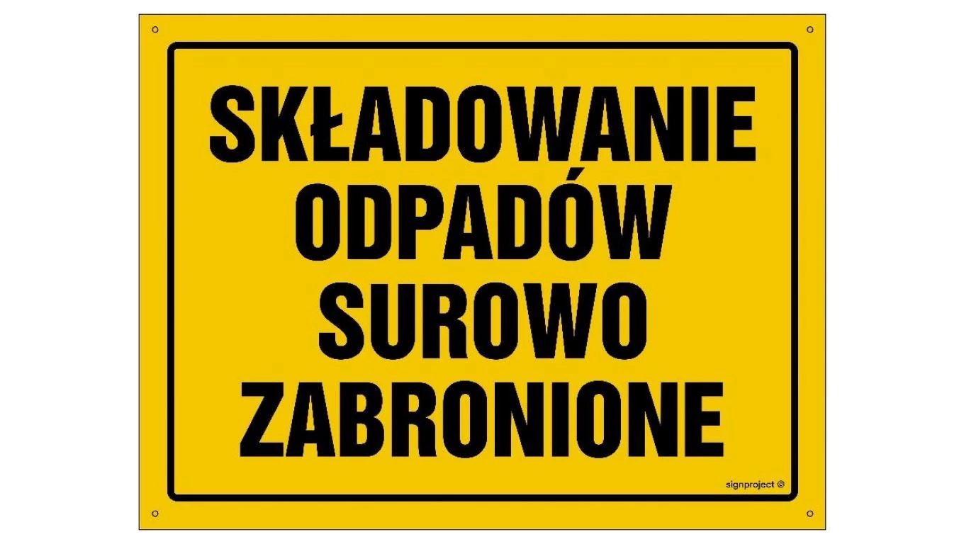 ZNAK - OA033 Składowanie odpadów surowo zabronione 45 x 32 cm BN - Płyta żółta 0,6mm