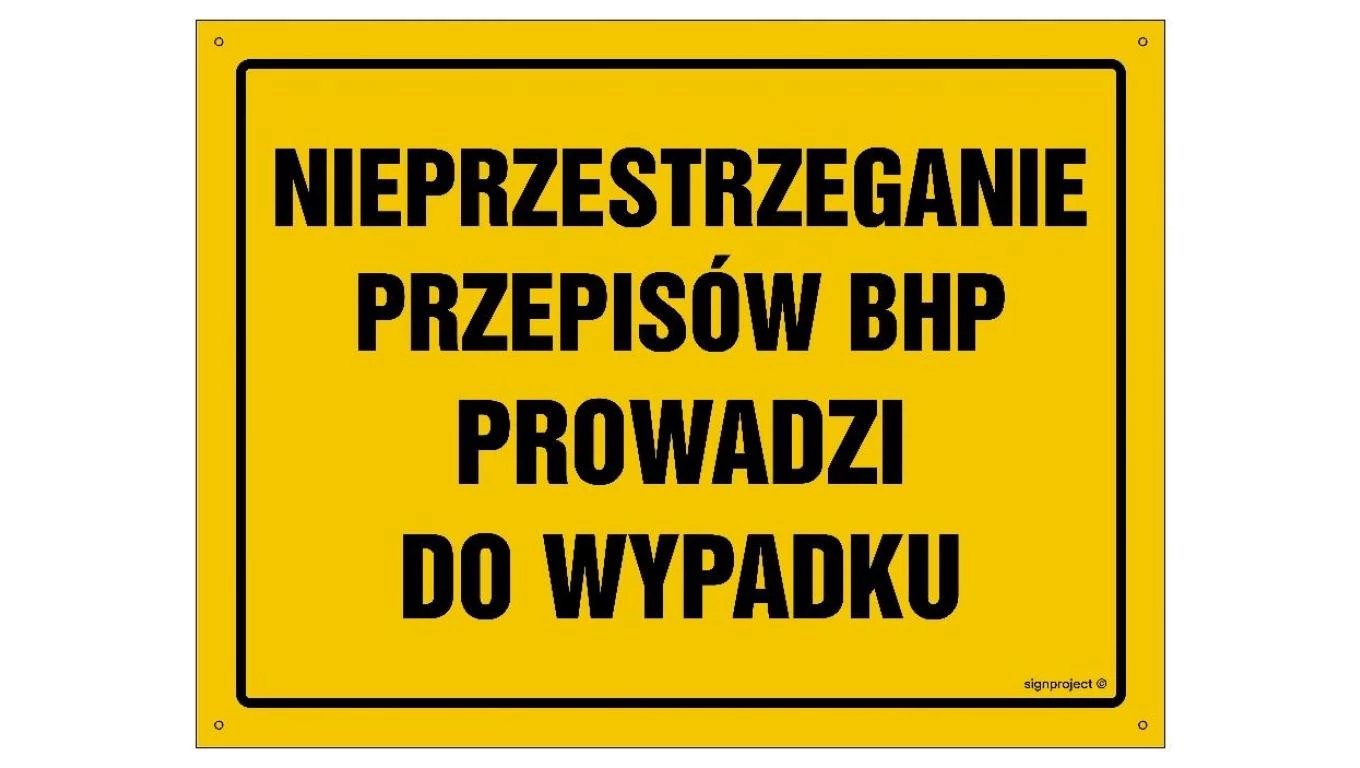 ZNAK - OA039 Nieprzestrzeganie przepisów BHP prowadzi do wypadku 45 x 32 cm FN - Folia samoprzylepna