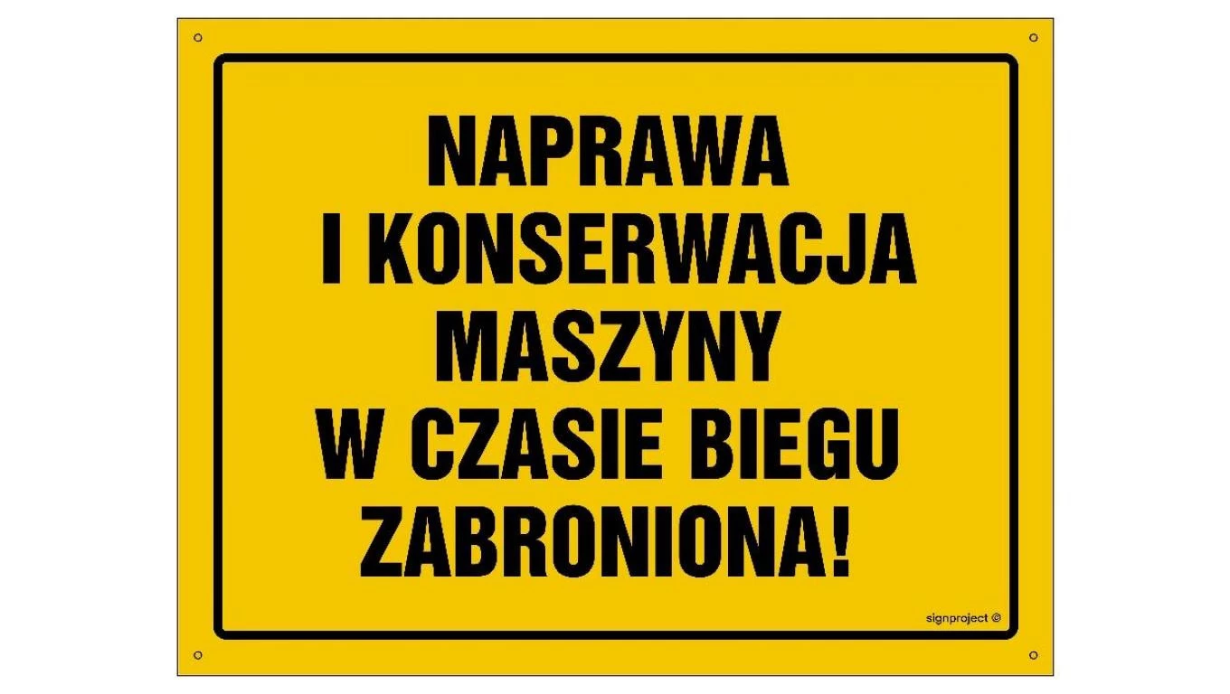 ZNAK - OA046 Uwaga! Nie zdejmuj osłon podczas pracy maszyny 30 x 21,5 cm BN - Płyta żółta 0,6mm