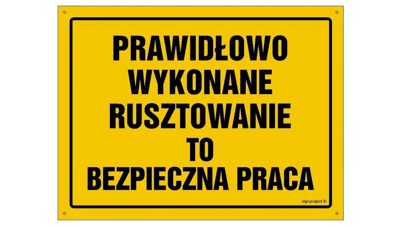 ZNAK - OA071 Prawidłowo wykonane rusztowanie to bezpieczna praca 35 x 25 cm BN - Płyta żółta 0,6mm