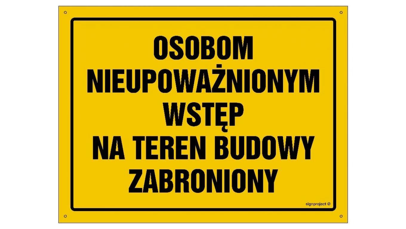 ZNAK - OA072 Osobom nieupoważnionym wstęp na teren budowy zabroniony 30 x 21,5 cm FN - Folia samoprzylepna