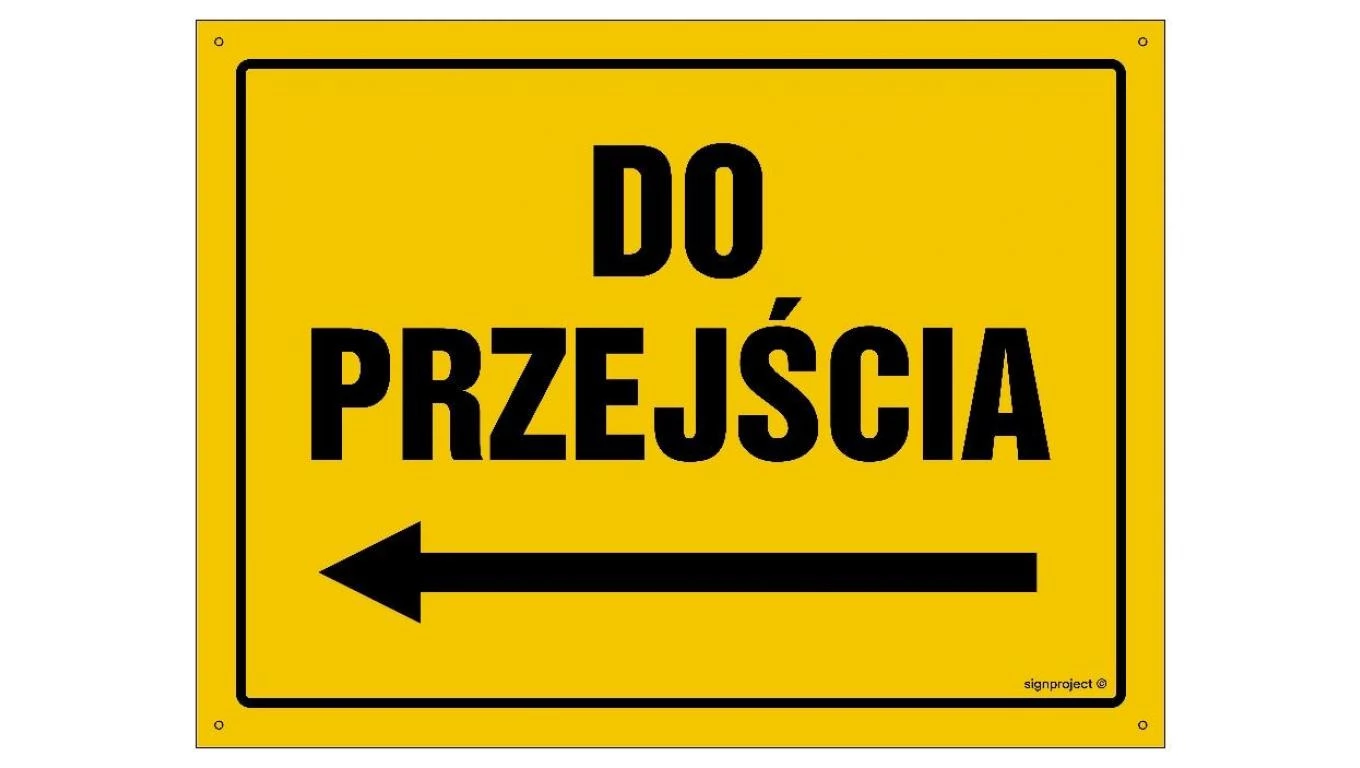 ZNAK - OA093 Kierunek do przejścia - w lewo 35 x 25 cm BN - Płyta żółta 0,6mm
