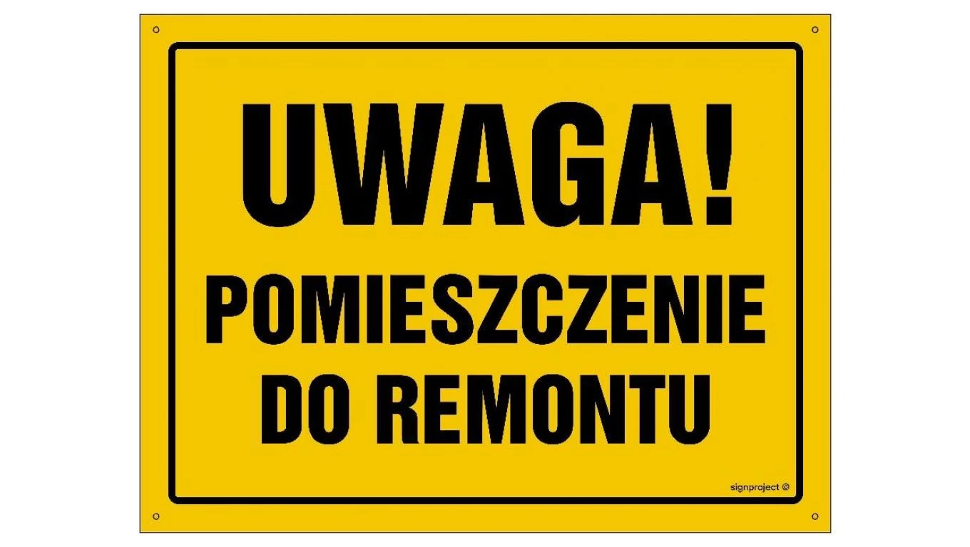 ZNAK - OA124 Uwaga! Pomieszczenie do remontu 80 x 57 cm FN - Folia samoprzylepna