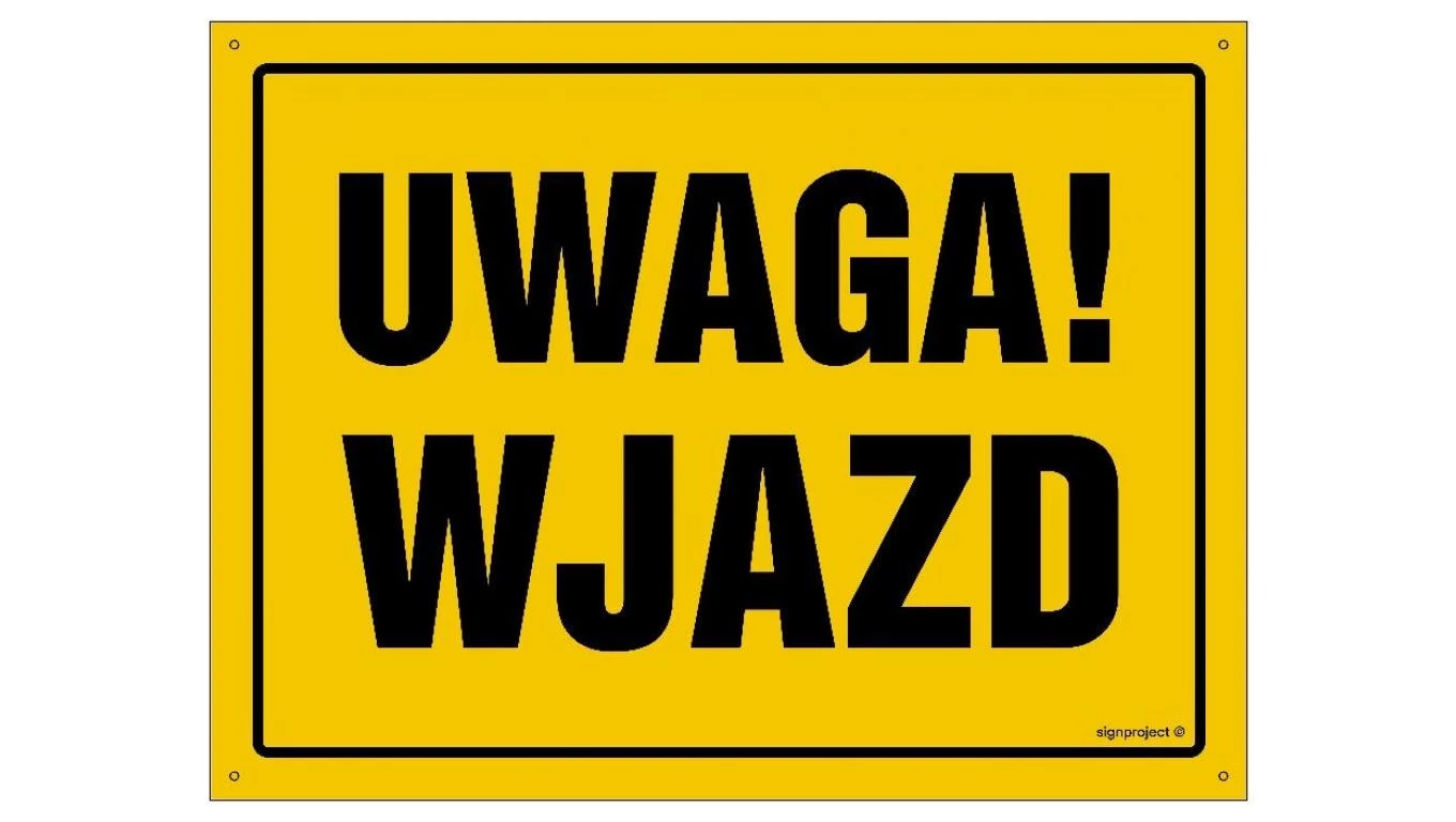 ZNAK - OA150 Uwaga! Wjazd 60 x 43 cm FN - Folia samoprzylepna