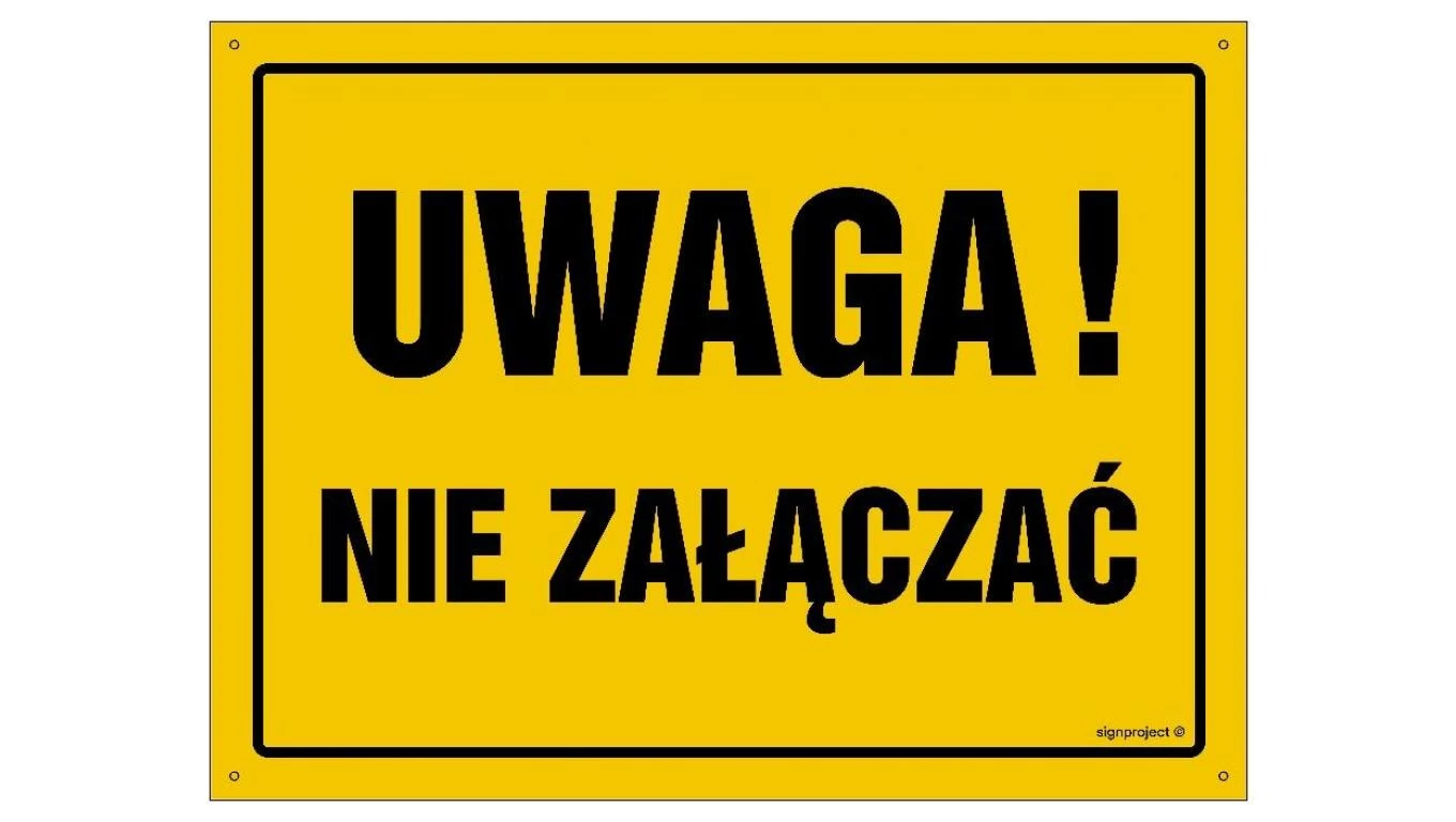 ZNAK - OA157 Uwaga! Nie załączać 30 x 21,5 cm FN - Folia samoprzylepna