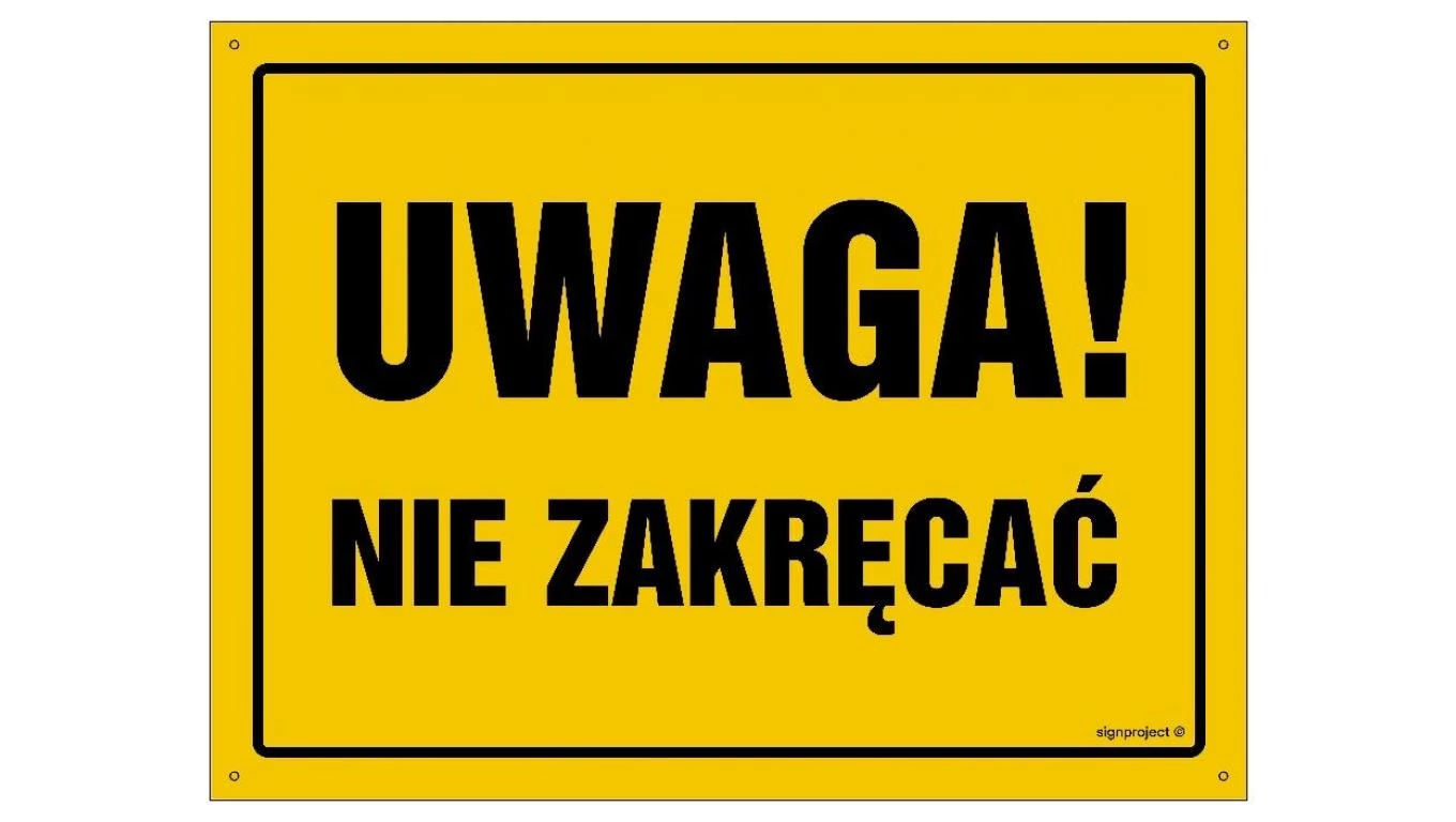 ZNAK - OA163 Uwaga! Nie zakręcać 45 x 32 cm FN - Folia samoprzylepna