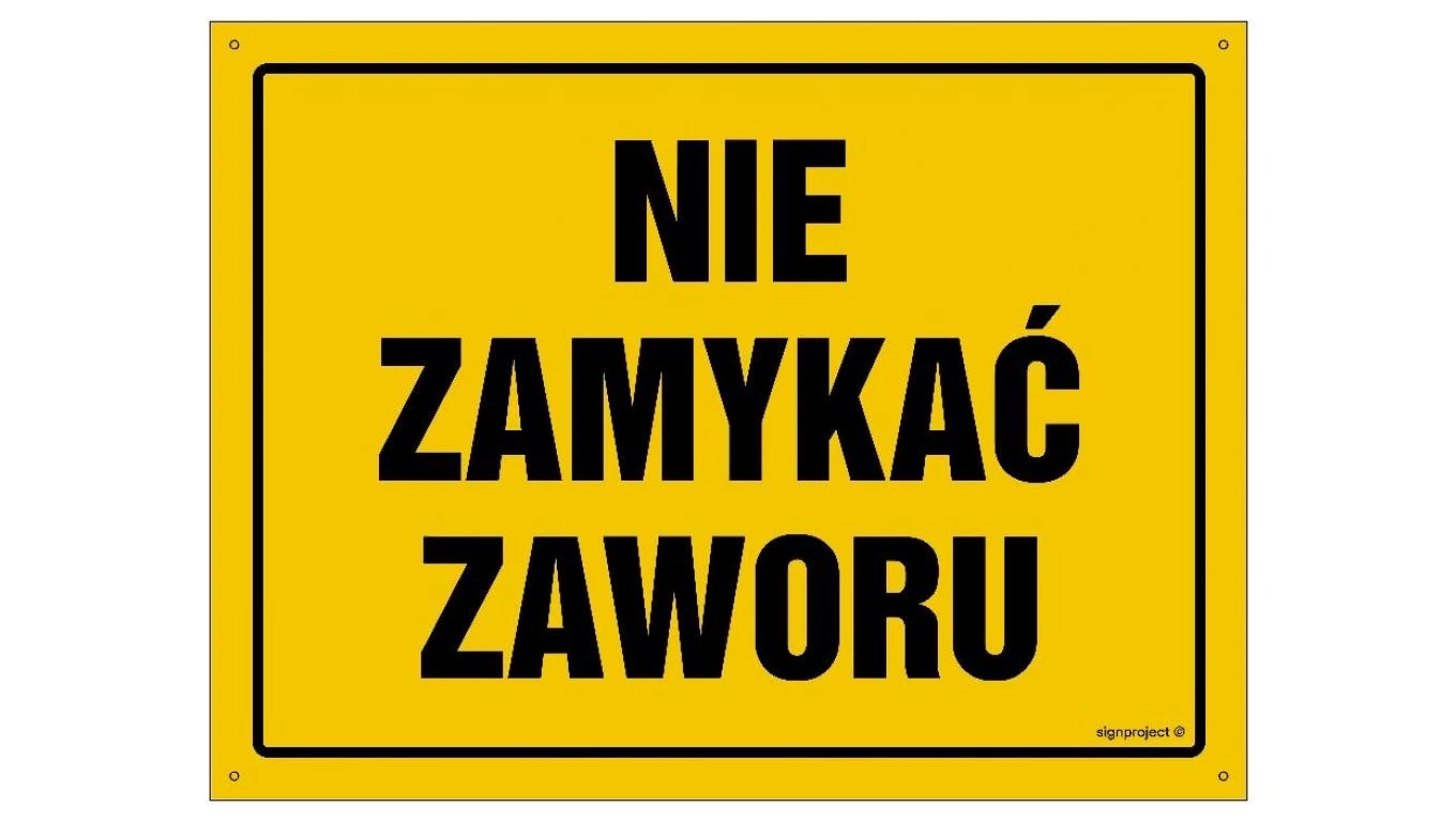 ZNAK - OA177 Nie otwierać zaworu 30 x 21,5 cm BN - Płyta żółta 0,6mm