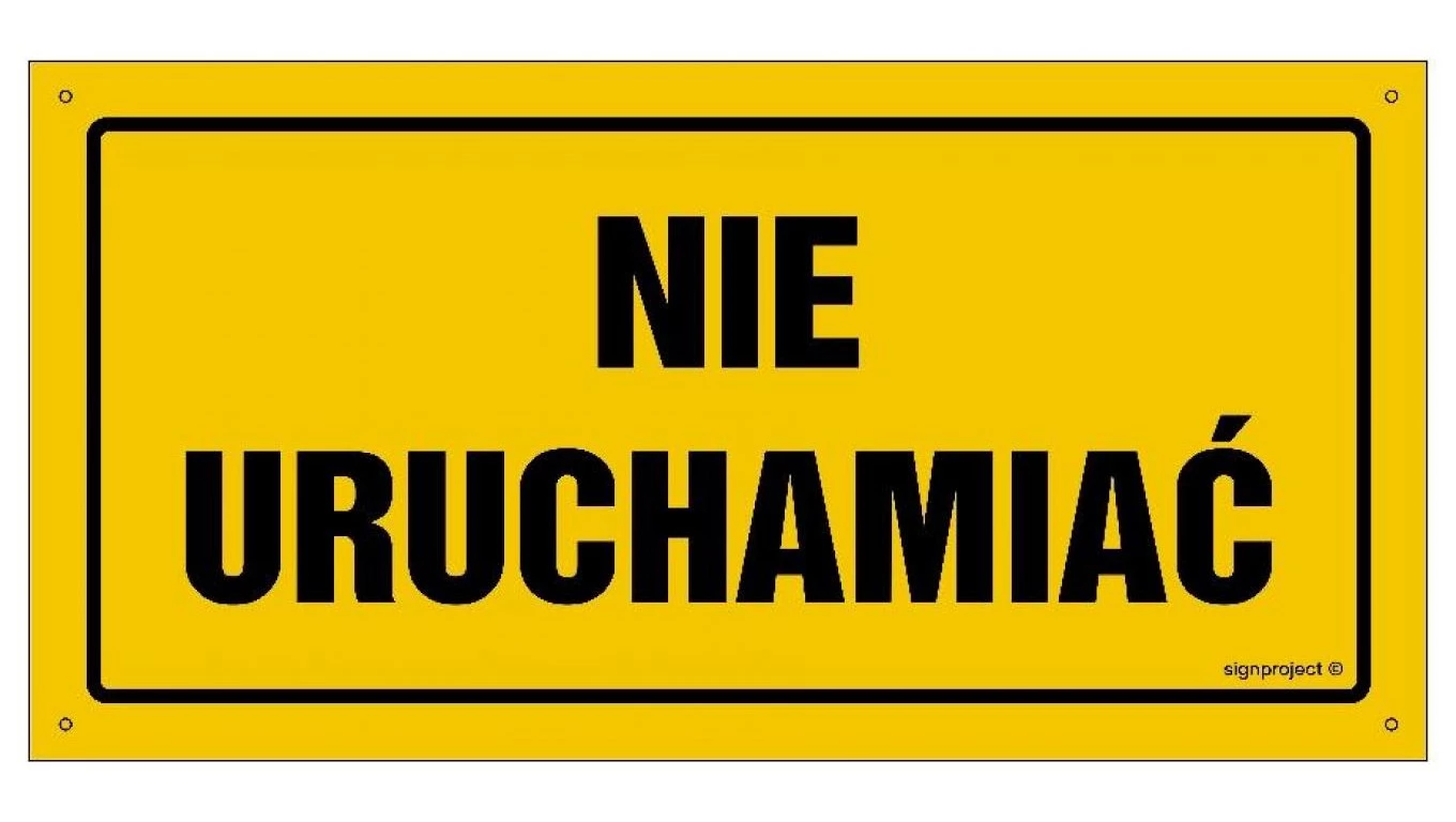 ZNAK - OA191 Nie uruchamiać 20 x 10 cm BN - Płyta żółta 0,6mm
