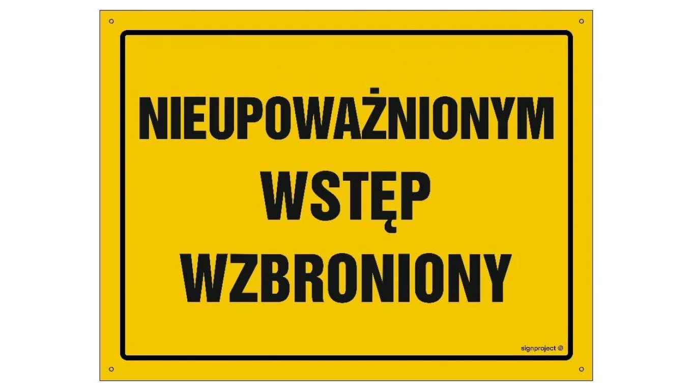 ZNAK - OA195 Nieupoważnionym wstęp wzbroniony 60 x 43 cm BN - Płyta żółta 0,6mm