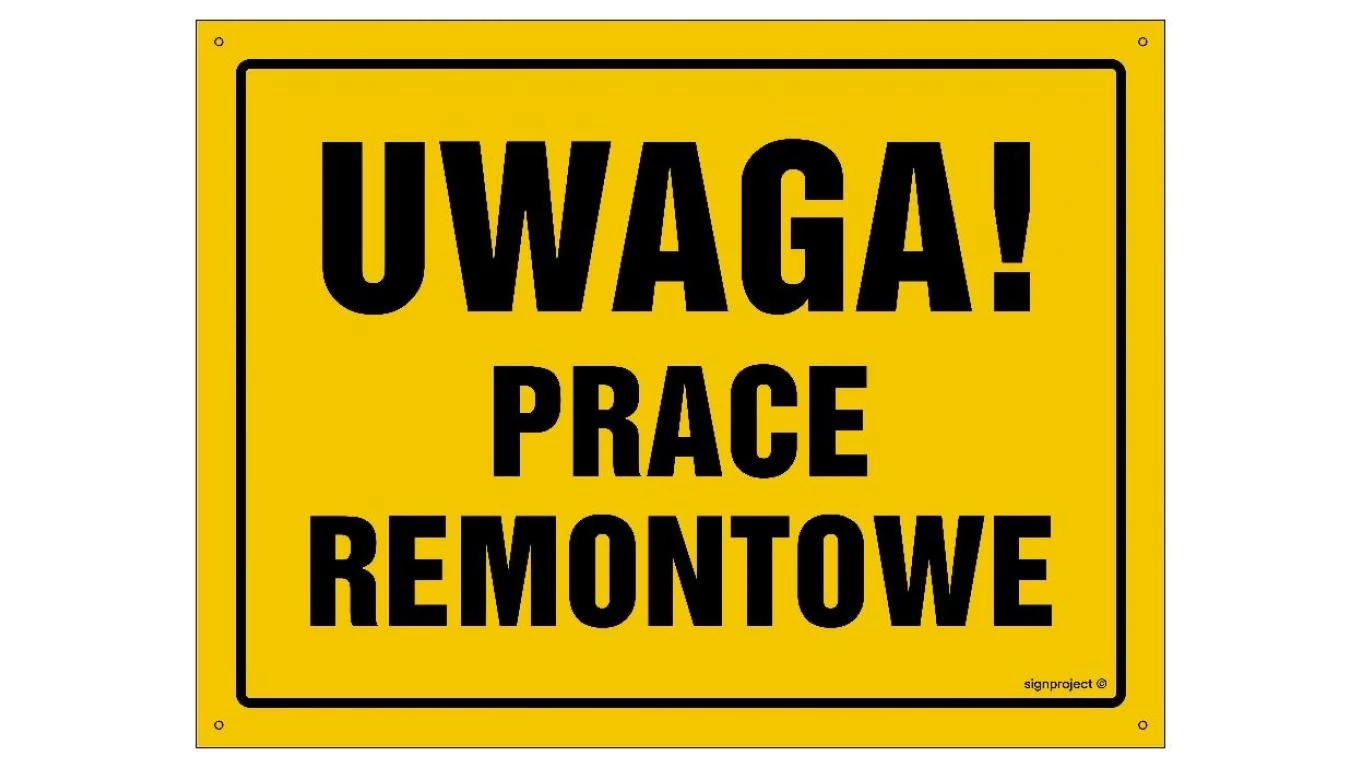 ZNAK - OA197 Uwaga! Prace remontowe 45 x 32 cm BN - Płyta żółta 0,6mm